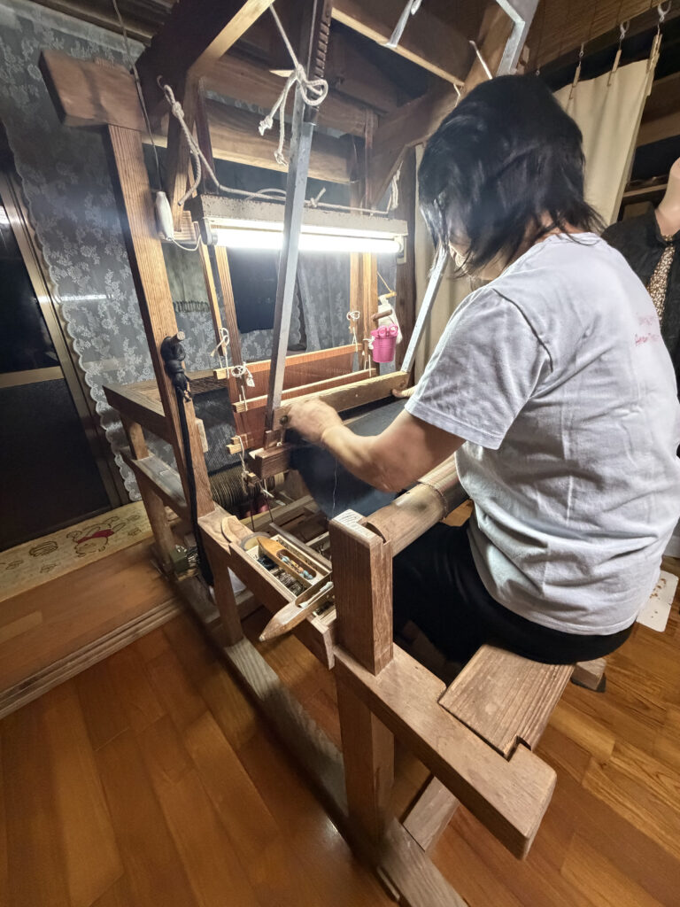古民家の中で、昔ながらの機織り機に向かい、糸をトントンと打ち込む。その音はまるで心臓の鼓動のようで、気づけば時間を忘れてしまうほど。