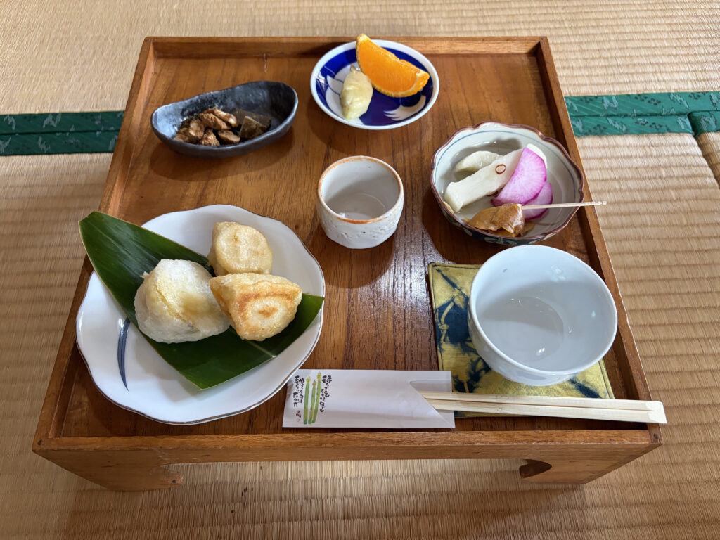 唄のあとには、地元のお菓子とお茶でほっと一息。音の余韻が心に残る、贅沢な時間です。